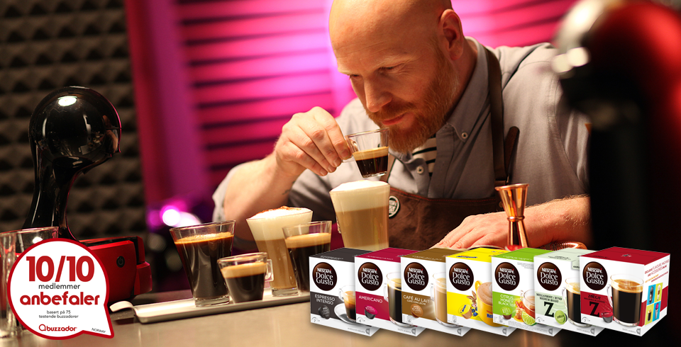 Nå kan du som kaffeelsker nyte masse god kaffe fra din NESCAFÉ® Dolce Gusto®-maskin! Som buzzador får du teste ulike typer kapsler fra NESCAFÉ® Dolce Gusto®. Hva foretrekker du − en sterk Espresso Intenso, en klassisk Café au Lait eller kanskje en Zoégas Mellanrost? Uansett hvilken kaffetype du er, finner du garantert en favoritt blant disse kapslene: Americano, Espresso Intenso, Café au Lait, Zoégas Mellanrost, Zoégas Mollbergs, Honey Black Citrus Tea og Nesquik.